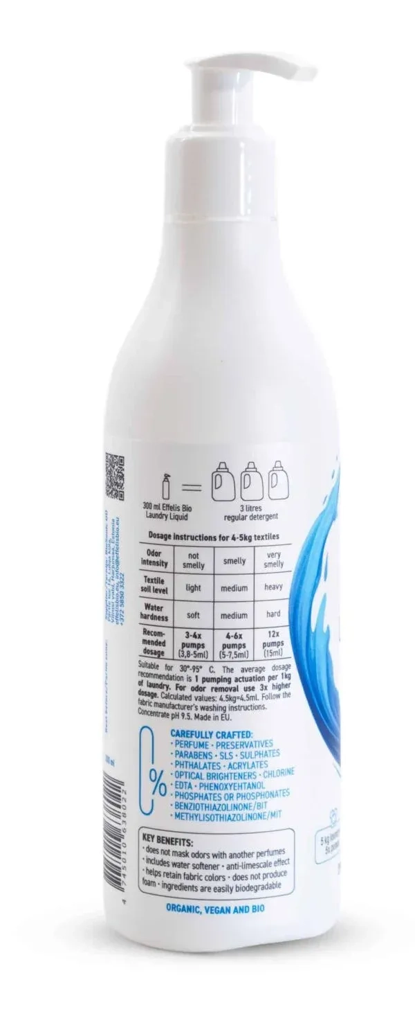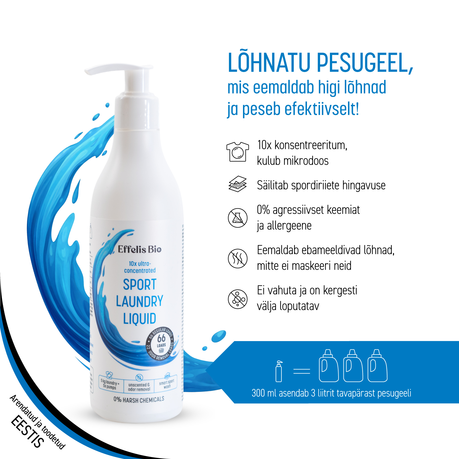 ОСНОВНЫЕ ПРЕИМУЩЕСТВА: Точная и простая дозировка, эффективно удаляет запахи пота и влаги, эффективен, но бережен для окружающей среды и здоровья, не маскирует неприятные запахи другими ароматами, содержит средство для смягчения воды, энзимный, сохраняет цвета ткани, мало пенится и легко вымывается, предотвращает образование накипи в стиральных машинах, быстро действует, экономичен, ингредиенты легко биоразлагаемы, органический, веганский и без насилия, без ГМО, меньше отходов