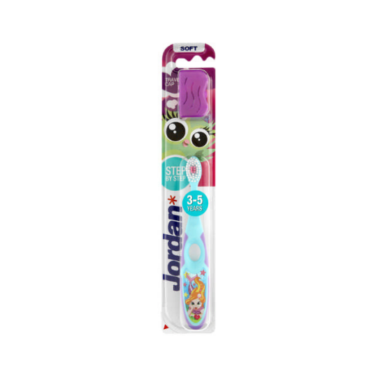 Зубная щетка Jordan подходит для детей в возрасте от 3 до 5 лет.