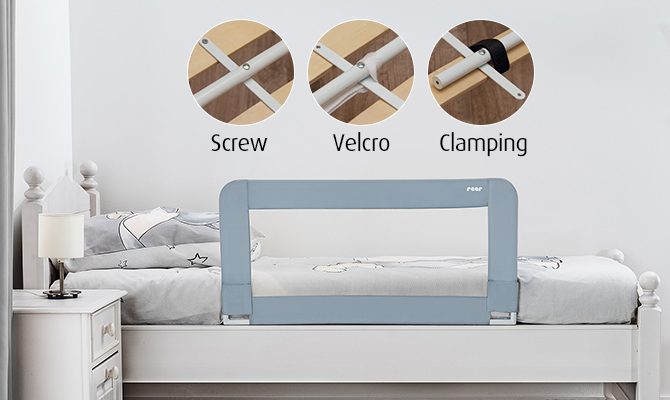 Бортик можно крепить к кровати тремя способами: с помощью шурупов к раме кровати, ремнем на липучке к реечной основе или фиксировать прилагаемым натяжным ремнём. Эти варианты обеспечивают надёжную и стабильную установку, предотвратив смещение, опрокидывание или выскальзывание бортика.