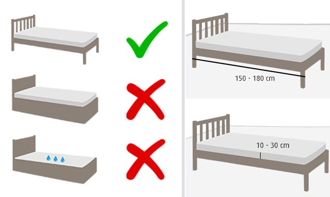 Ограждение поставляется уже собранным, что делает установку и демонтаж быстрыми и простыми. Нужно только разложить бортик, поместить его между кроватью и матрасом и зафиксировать — никакие инструменты не требуются. Широкие опорные ножки обеспечивают устойчивость ограждения на реечной основе даже без дополнительных креплений.