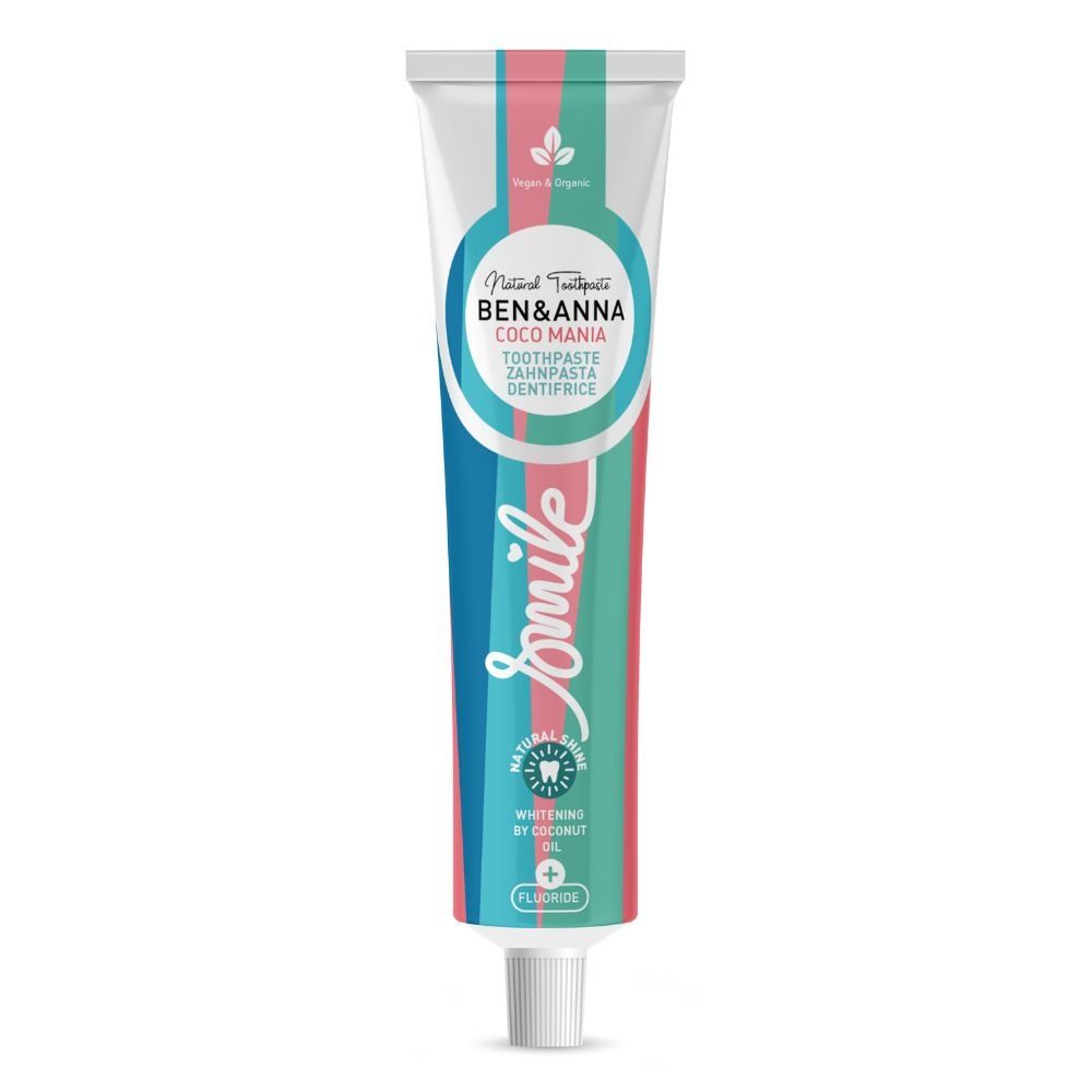 Кокосовый вкус. Сертифицированная натуральная косметика Natrue: натуральные ингредиенты для здоровых и белых зубов. Зубная паста с фтором (1450 ppm) помогает предотвращать зубной налет и кариес.