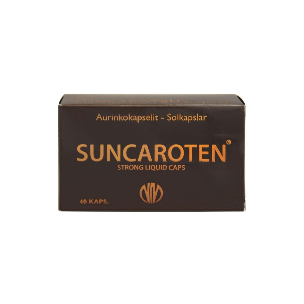 Suncaroten Strong – уникальное сочетание и действие трёх мощных растительных пигментов, при этом он не подавляет собственную выработку витамина D кожей. Капсулы содержат эффективное сочетание астаксантина, ликопина и бета-каротина, которые улучшают защиту кожи от солнечных лучей, помогают добиться более красивого и устойчивого загара.