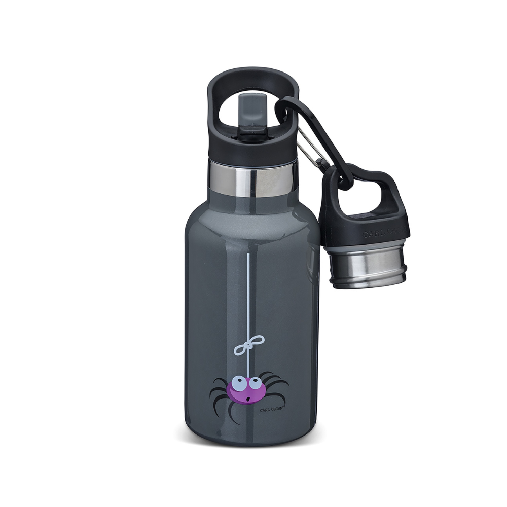 Нержавеющая стальная бутылка-термос для питья CARL OSCAR 2в1 с металлической трубочкой и изображением паука СЕРЫЙ, 350 мл