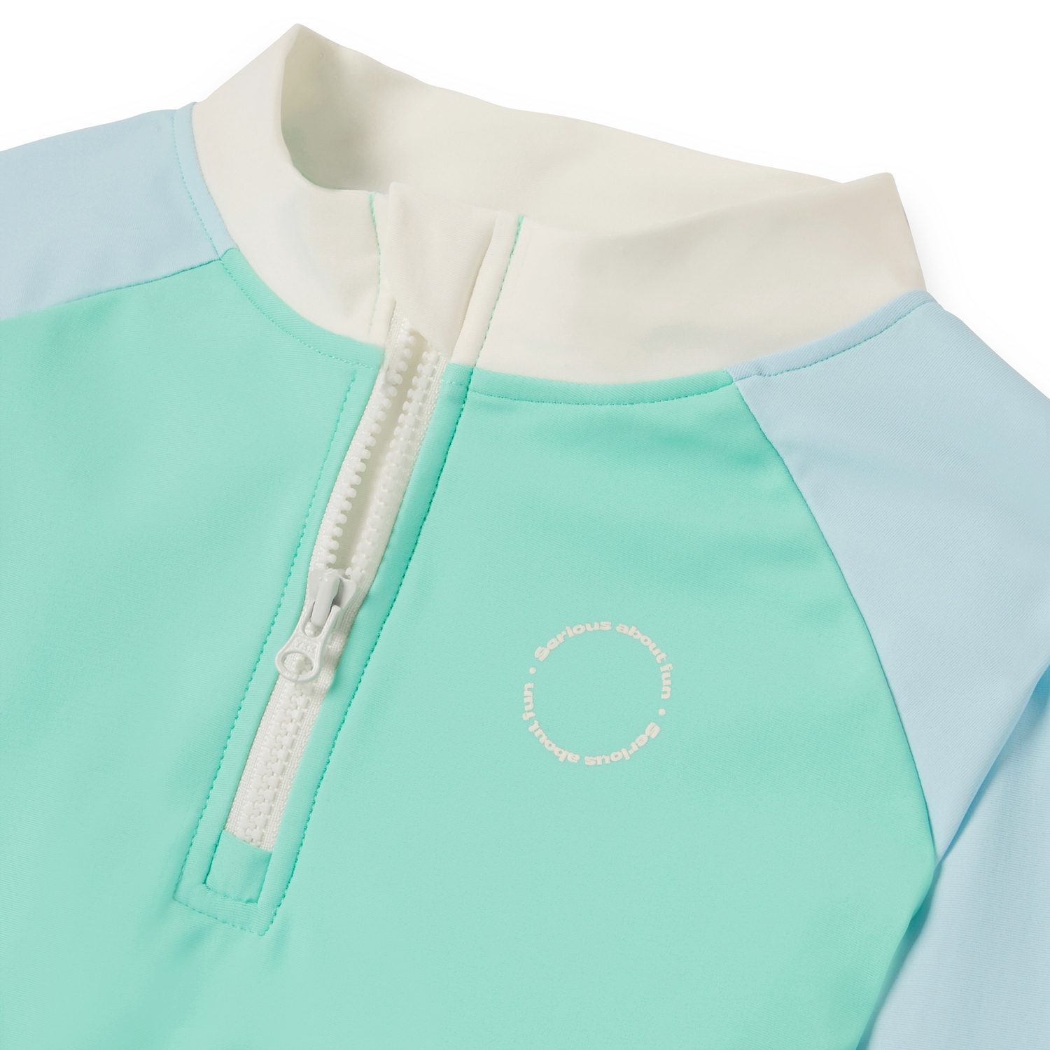 Ткань с длинными рукавами UPF 50+ обеспечивает полную защиту от УФА и УФБ лучей и помогает сохранять чувствительную кожу детей в безопасности – естественно, без дополнительной обработки.