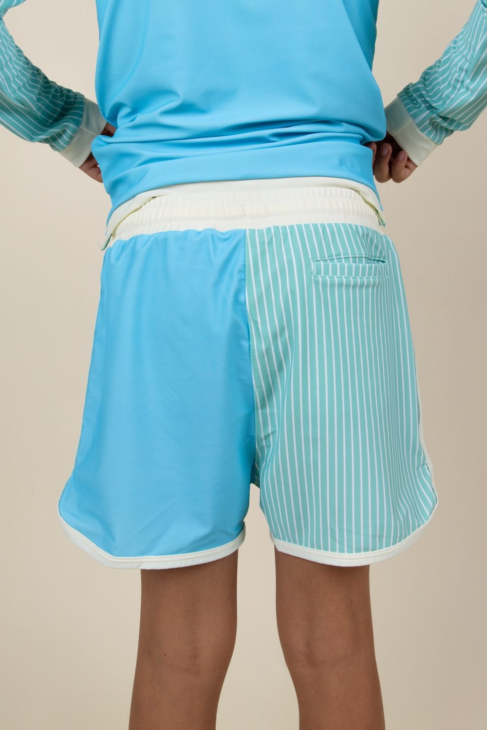 Шорты оснащены УФ-сенсором, который меняет цвет по мере усиления солнечного света (чем более фиолетовый оттенок, тем больше защиты требуется) — это простой способ научить детей заботиться о себе на солнце.