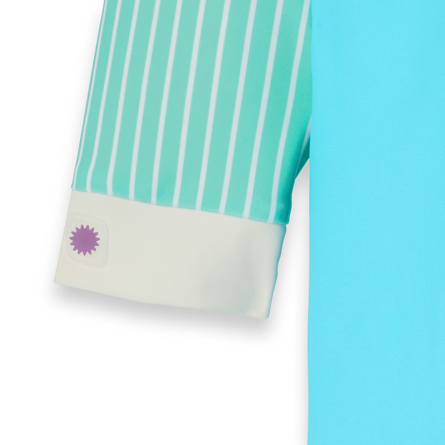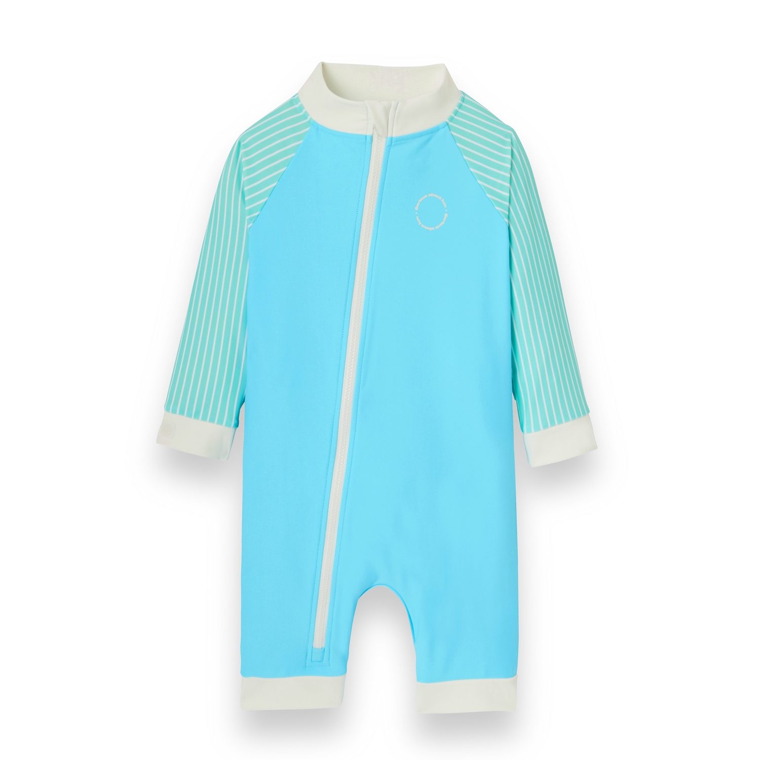 Ткань UPF 50+ обеспечивает полную защиту от вредных УФ-лучей, помогая защитить чувствительную кожу детей. Рукава средней длины и штанины обеспечивают большую область покрытия, а молния во всю длину от шеи до ног облегчает переодевание и смену подгузников даже для самых беспокойных малышей.