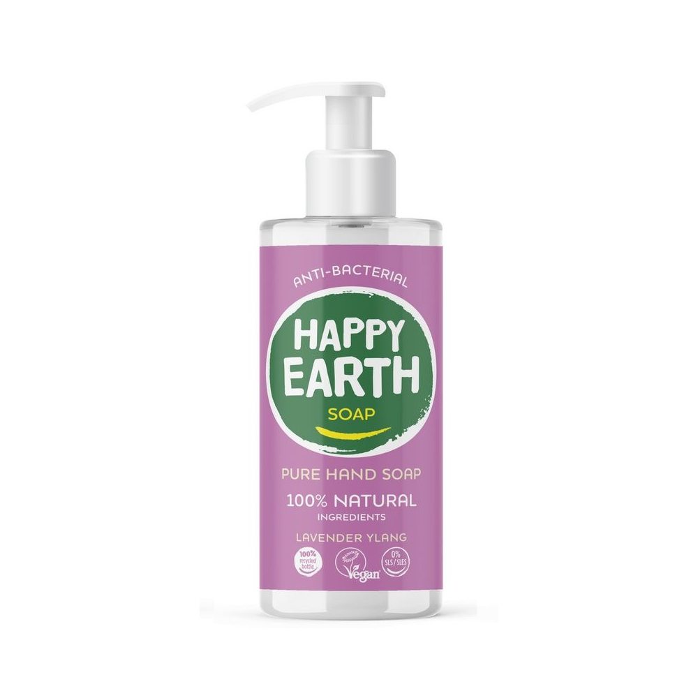Мыло для рук с восхитительным ароматом лаванды и иланг-иланга, обладающее антибактериальными свойствами, биоразлагаемое, изготовлено на основе растительной формулы, включающей растительные экстракты и эфирные масла. Happy Earth Hand Soap на 100% натуральное, на 100% эффективно и не содержит никаких химикатов.