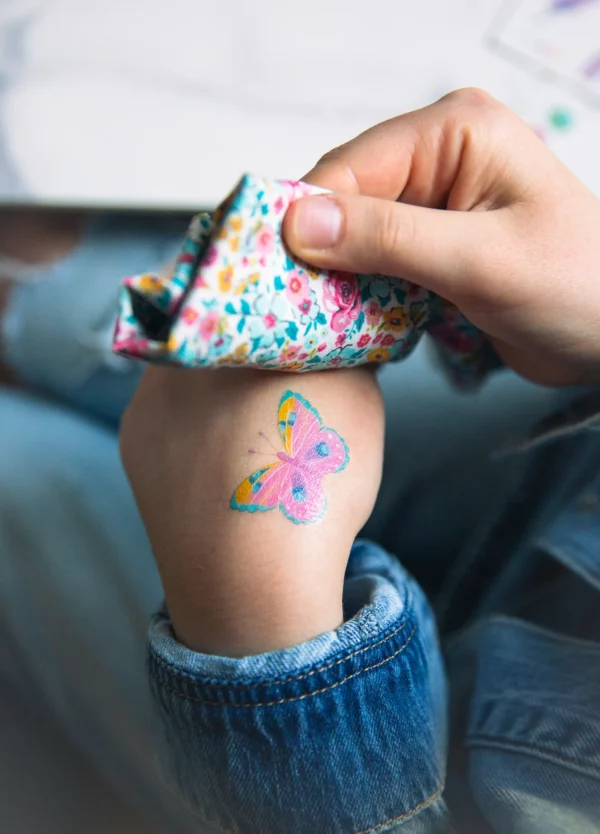 - Лист с временными татуировками – легко наносится и весело носится