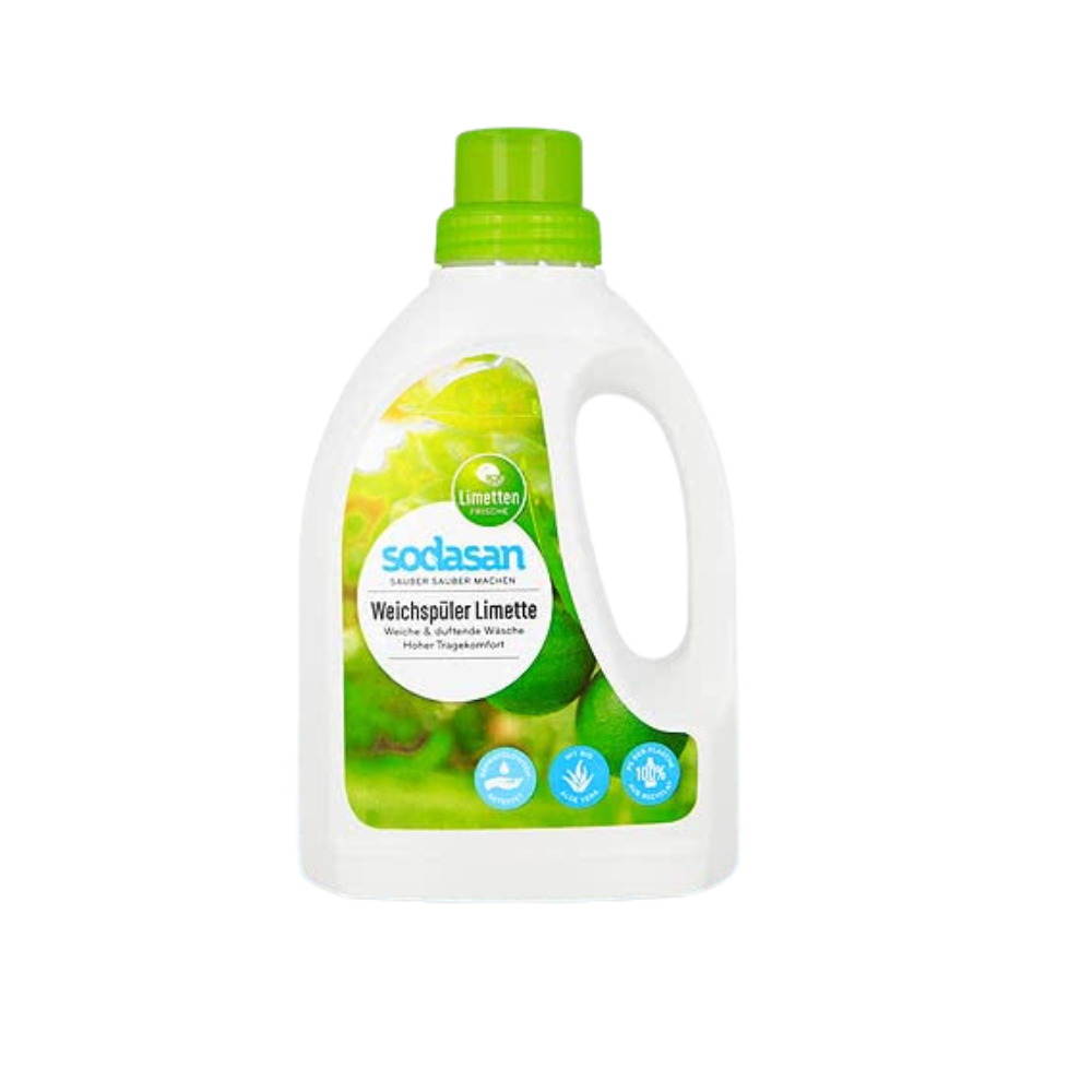 Ополаскиватель для белья Sodasan придаёт вещам свежий лаймовый аромат. Благодаря растительным компонентам, таким как органический алоэ вера и соевый лецитин, формула обеспечивает белью приятную мягкость. Остатки моющего средства мягко удаляются, а волокна обрабатываются, облегчая процесс глажки. Подходит для всех типов тканей.