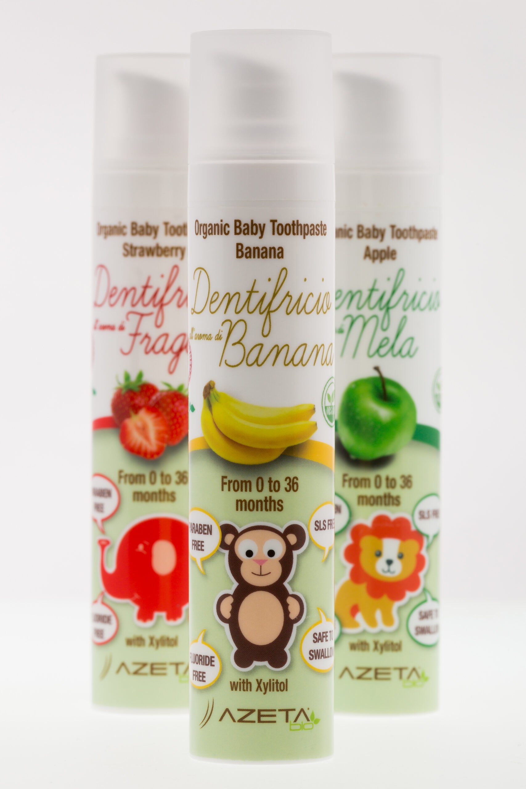 Органические зубные пасты Azetabio мягко воздействуют на дёсны и защищают зубную эмаль от бактерий. Зубная паста имеет приятный клубничный вкус.