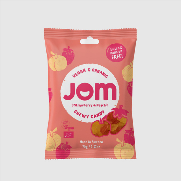 JOM Organic Gummies — Клубника и Персик — одна из трёх новых конфетных смесей от шведского органического производителя сладостей. Теперь у JOM есть свой конфетный набор на каждый день: в ассортименте уже семь продуктов. Если ваш фаворит — персик, то этот вкус также доступен и отдельно.