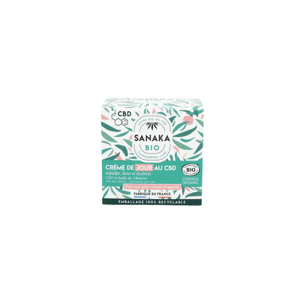 Дневной крем SANAKA с КБД*, органическим маслом конопли, богатым незаменимыми жирными кислотами, гиалуроновой кислотой и гелем алоэ вера, известными своими антивозрастными свойствами, подтягивает, разглаживает, увлажняет и питает кожу.