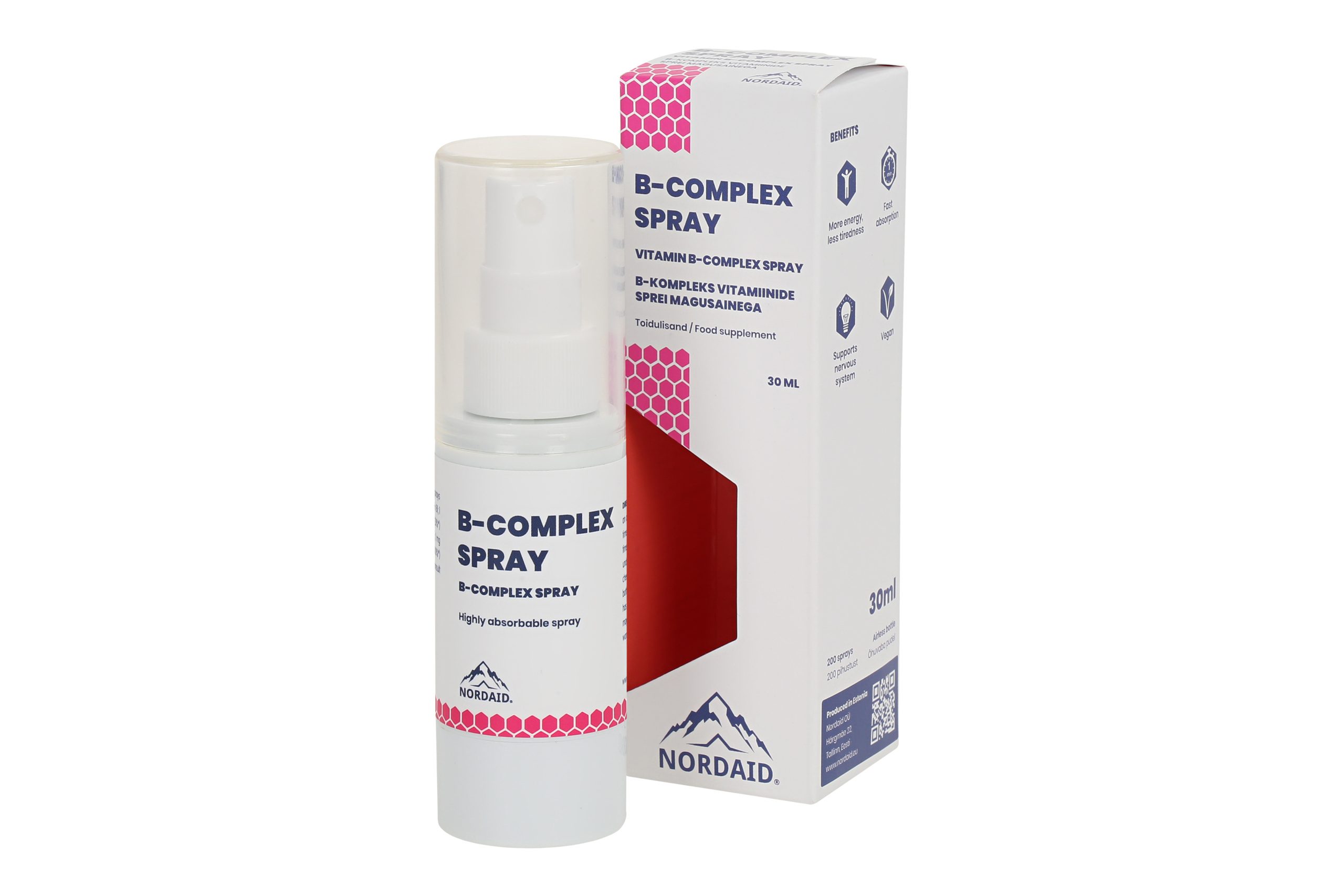Спрей витаминов группы B Nordaid легко усваивается, поскольку поступает непосредственно в кровоток через слизистую оболочку полости рта. Содержит комплекс витаминов группы B, способствующий уменьшению усталости и истощения, поддерживает нормальное функционирование нервной и иммунной систем, нормальное образование эритроцитов, а также помогает поддерживать нормальное состояние кожи, слизистых оболочек и зрения.