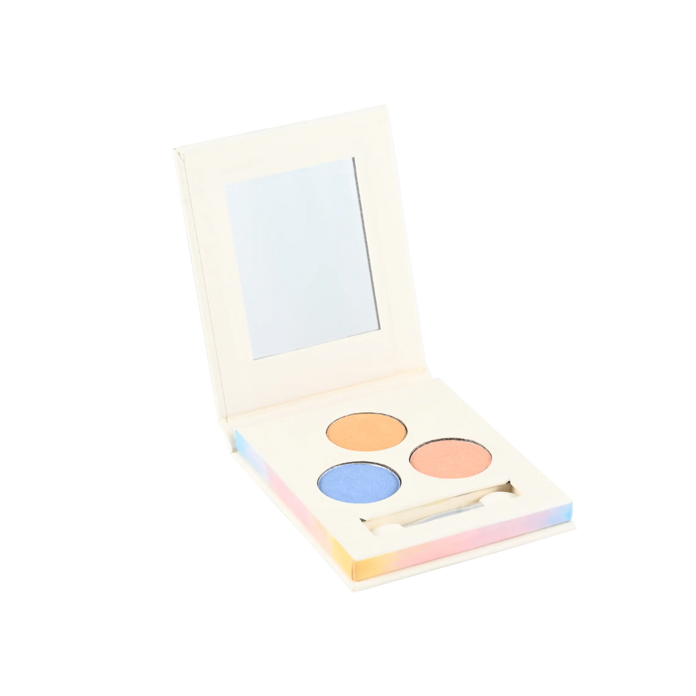 Весёлый и практичный формат: футляр с интегрированным зеркалом легко взять с собой куда угодно.
