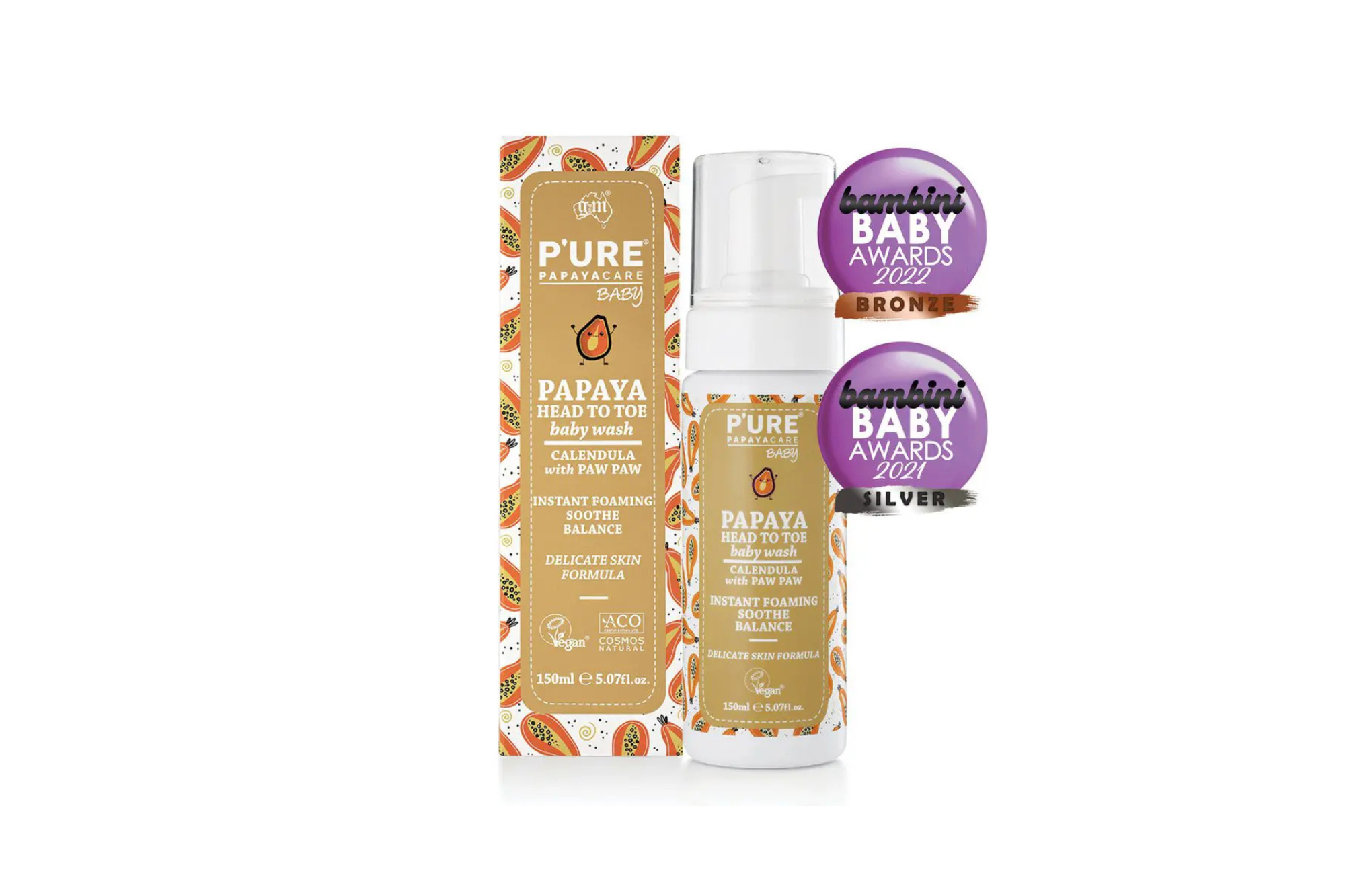 Пенка для мытья от головы до пят P’URE Papayacare мгновенно образует пену, мягко и естественно очищает кожу вашего малыша, делая её мягкой и гладкой. Это увлажняющее средство, обогащённое папайей и календулой, очищает кожу без раздражения. Натуральные ингредиенты P’URE Papayacare помогают поддерживать защитный барьер кожи, сохраняя её здоровой, гладкой и сбалансированной. Очень деликатное средство с растительными и легко биоразлагаемыми ПАВ. Рекомендовано для чувствительной детской кожи.
