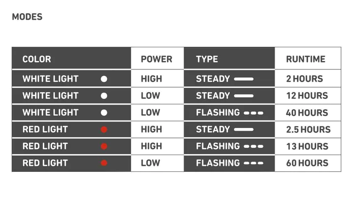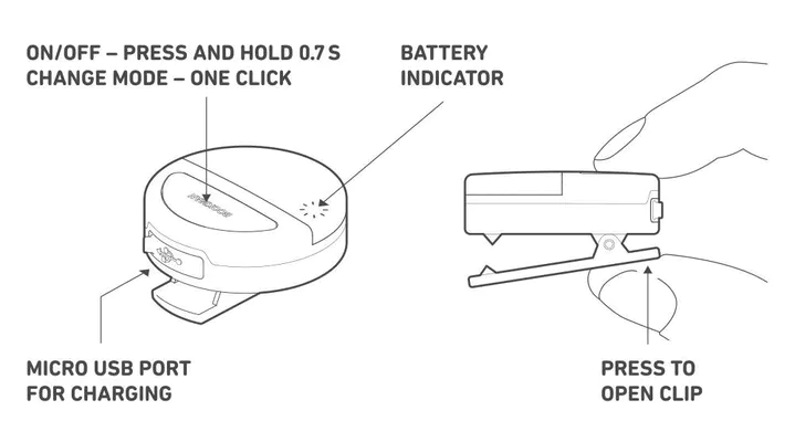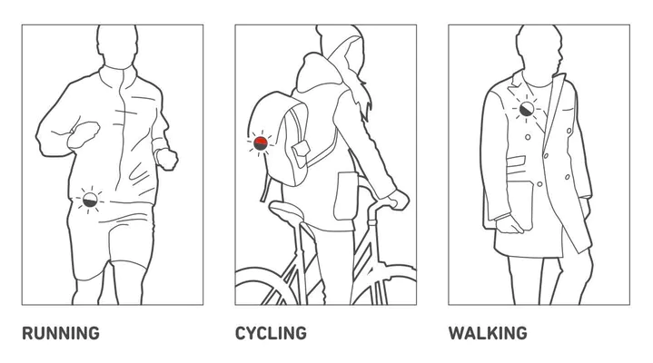Фонарь имеет различные режимы, обеспечивающие разную продолжительность работы (см. изображения). Закрепите отражатель на одежде, сумке или в любом месте, где есть возможность крепления, всего одним щелчком. Также вы можете носить отражатель во время различных активных занятий, таких как бег, езда на велосипеде, прогулки и т.д.