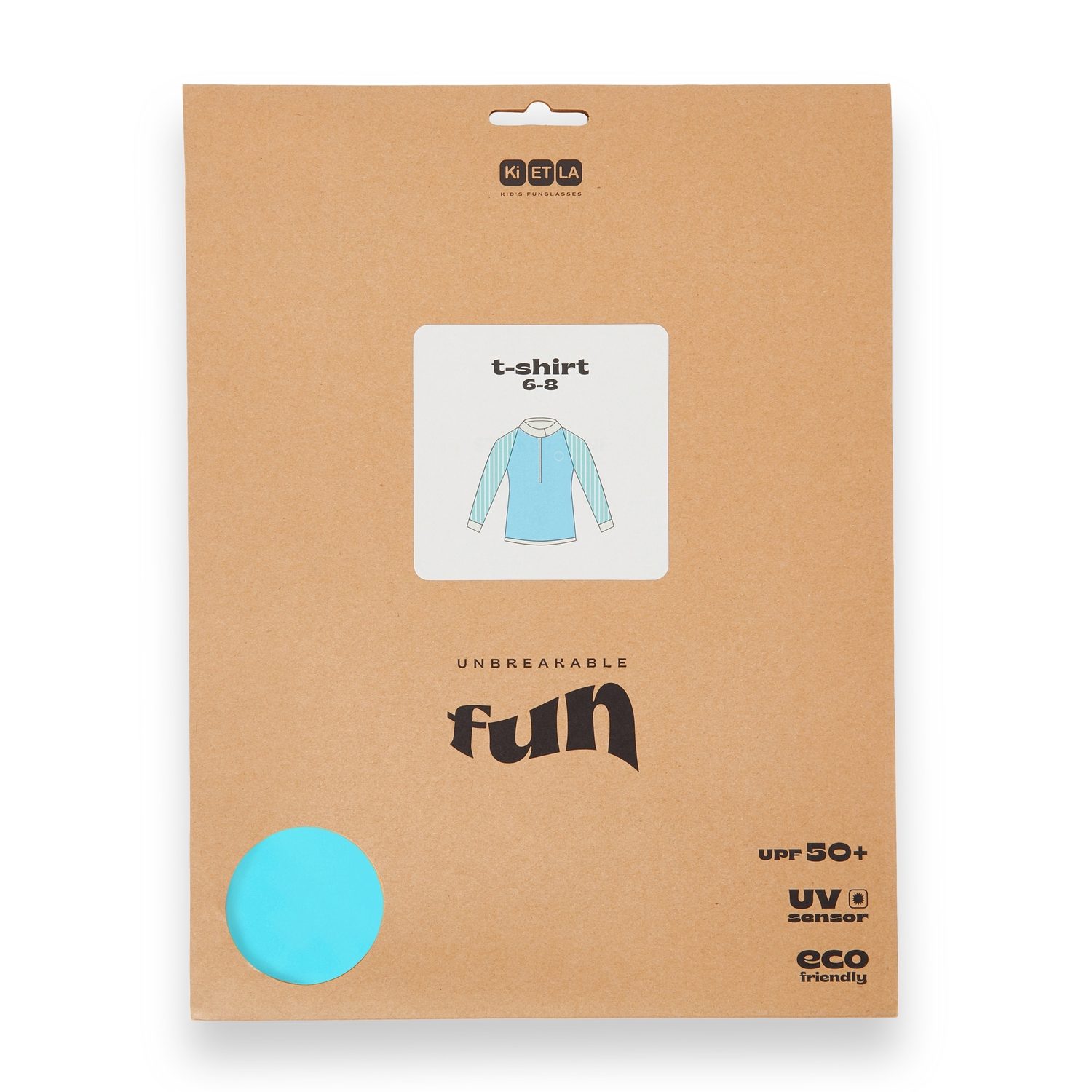 Вся упаковка серии купальников и пончо вдохновлена стилем очков Ki ET LA: натуральная крафт-бумага с яркими акцентами. Модели, цвета и возрастные группы быстро узнаваемы. Круглое отверстие в нижнем левом углу позволяет почувствовать материал и увидеть цвет.