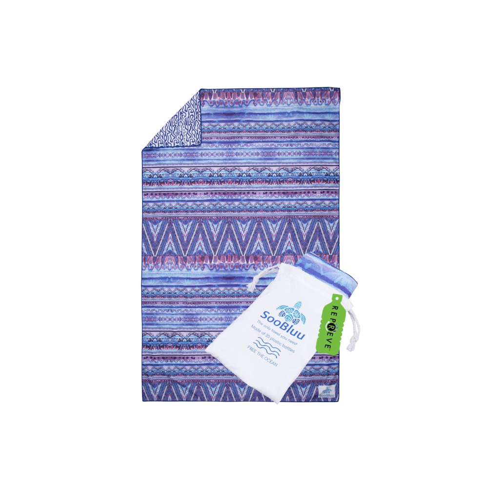 Быстросохнущее стильное пляжное полотенце с двухсторонним принтом. Для изготовления каждого полотенца Shoresyde было собрано до 20 пластиковых бутылок из океана или с суши.