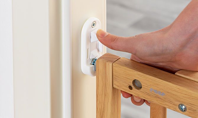 Ворота могут открываться в обе стороны, однако для использования в верхней части лестницы предусмотрен ограничитель, позволяющий открывать только в сторону, безопасную для ребенка – от ступенек.