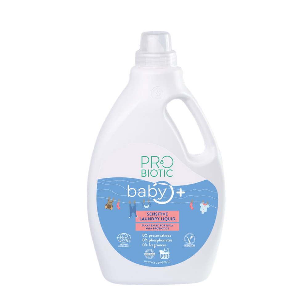 Геля для стирки хватает на 30 стирок, он содержит пробиотические бактерии, которые ухаживают за вашим бельём и чувствительной кожей. Продукт предназначен для стирки детской одежды, но также подходит для стирки белья всей семьи.