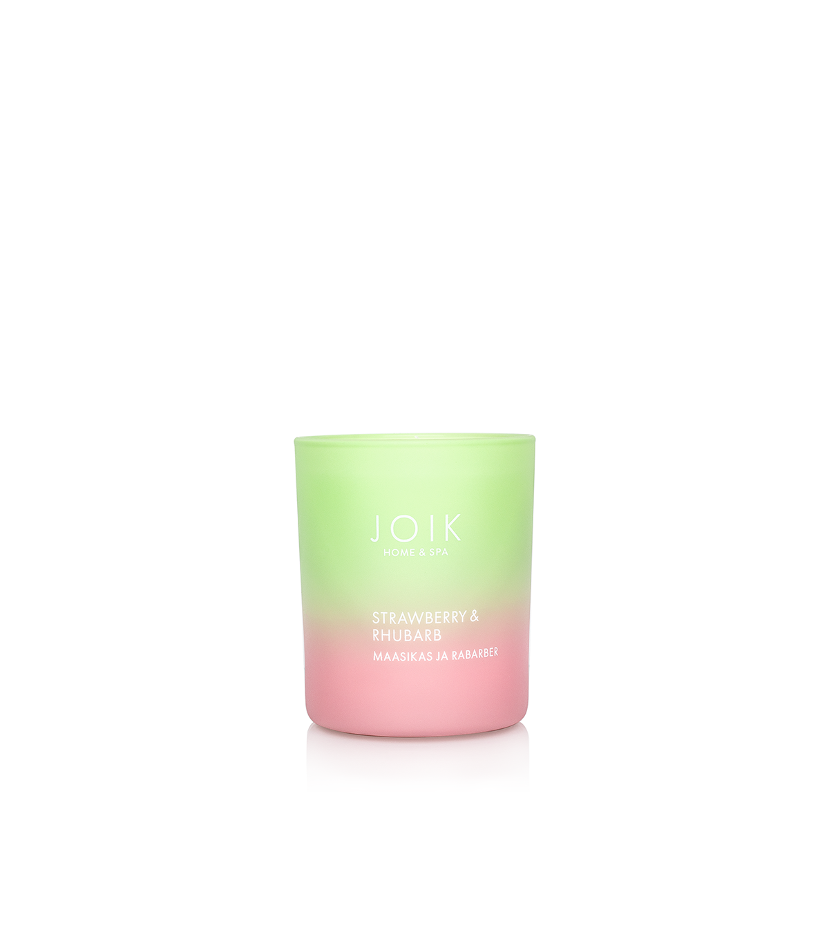 Пахнет как «большое лето». Сладкая клубника, созревшая под горячим солнцем, сбалансирована легкой кислинкой ревеня.
