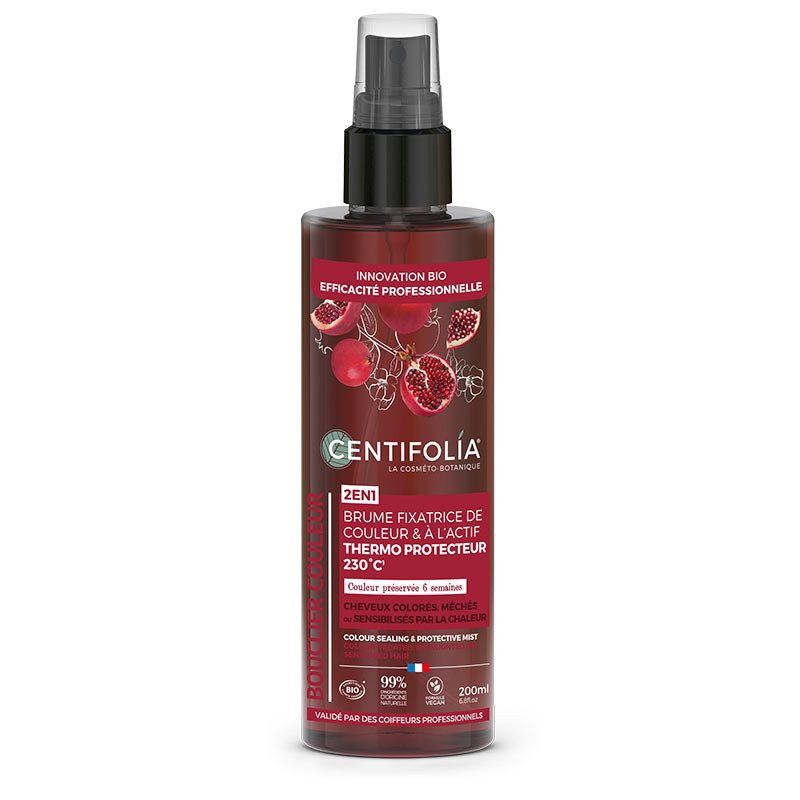Первый органический спрей для защиты цвета и тепловой защиты, который фиксирует и защищает цвет волос до 6 недель, одновременно оберегая волосы от термического повреждения до 230°C.