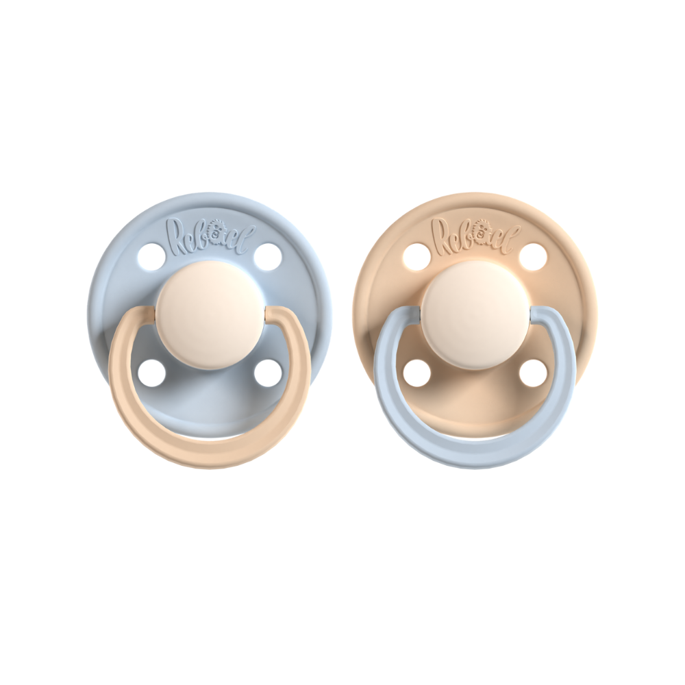 Модные пустышки, произведённые в Дании, представлены в красивых оттенках. Они соответствуют требованиям стандарта EN-1400 и на 100% не содержат BPA. Пустышки Rebael оснащены сосками из натурального каучука, также известного как натуральный латекс. В пустышках Rebael натуральный каучук сушится естественным образом без использования химикатов. Это означает, что процесс производства занимает немного больше времени, но обеспечивает более чистые, прочные и безопасные пустышки.