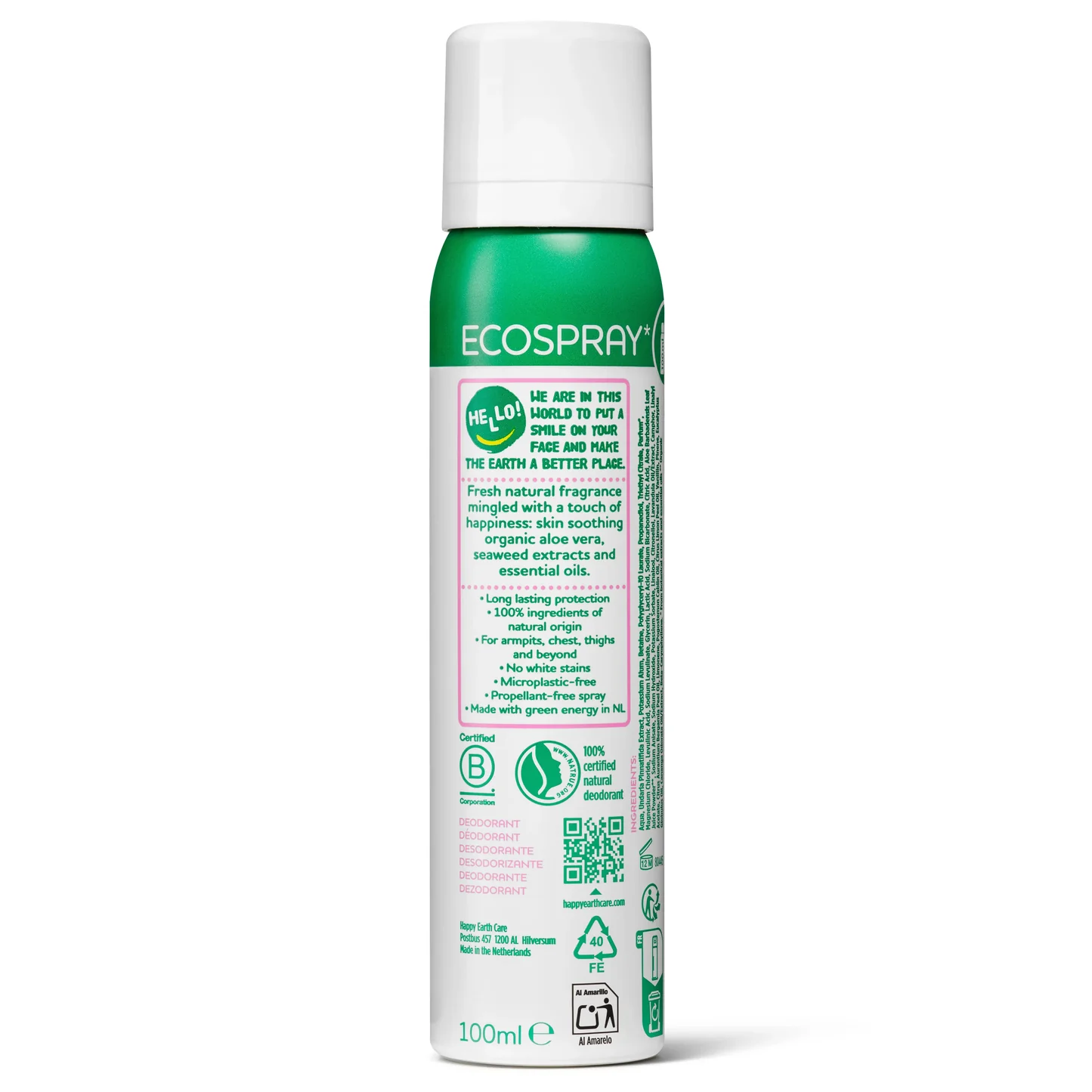 Спрей для тела Happy Earth Whole Body Deo Spray Lavender Ylang — это 100% натуральный веганский дезодорант для тела, предназначенный для освежения всего тела — от подмышек до ног и туловища. Дезодорант не содержит хлорид алюминия, спирт, парабены, минеральные масла или вредные газы и полностью свободен от микропластика.