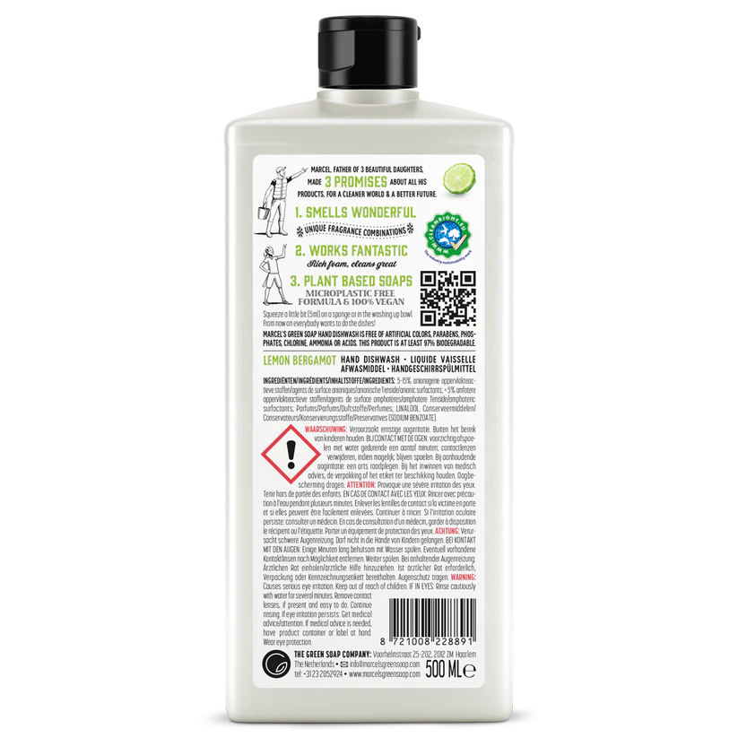 Наслаждайтесь сверкающе чистой посудой и свежим цитрусовым ароматом каждый раз с натуральным средством для мытья посуды Marcel’s Green Soap. Гармония запахов – свежий энергичный лимон в сочетании с мягким расслабляющим бергамотом – превращает ежедневное мытьё в приятный ритуал.