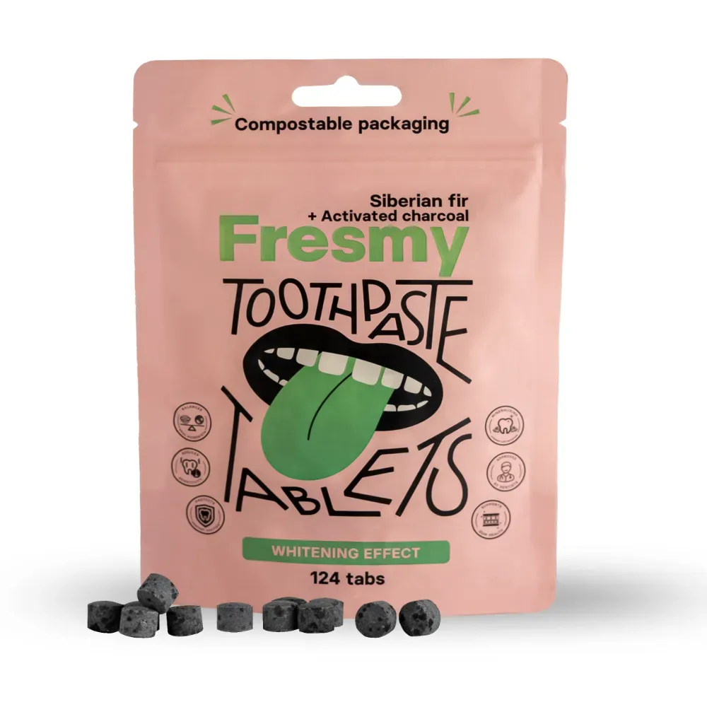 Таблетки зубной пасты сибирской пихты и активированного угля содержат гидроксиапатит (HAp), который является нетоксичной альтернативой фтору. Он естественным путем восстанавливает зубную эмаль.