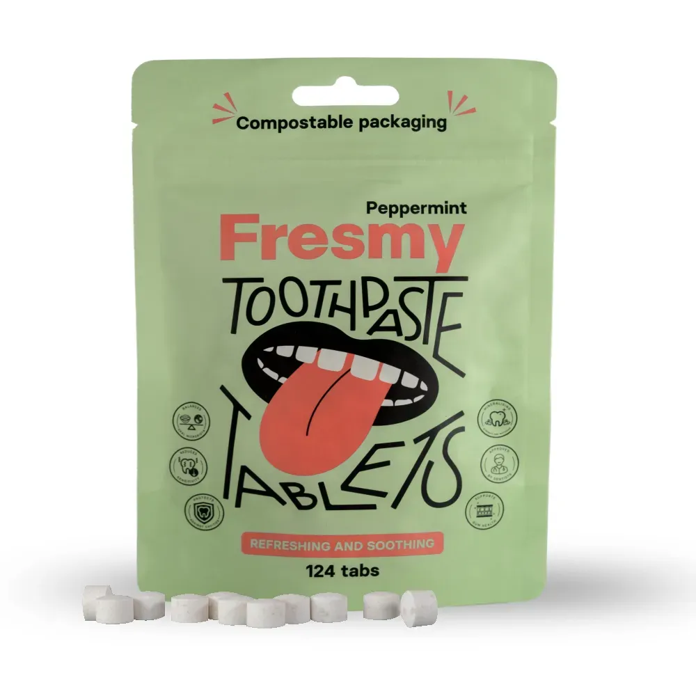 Мятные зубные таблетки содержат гидроксиапатит (HAp), который является нетоксичной альтернативой фториду. Он естественным образом восстанавливает эмаль зубов.