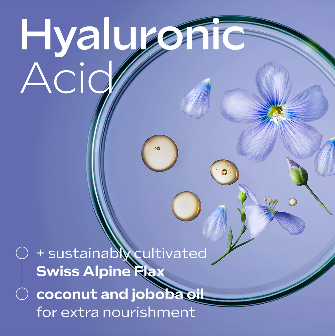 – Обогащен глубоко увлажняющей гиалуроновой кислотой и экстрактом альпийского льна