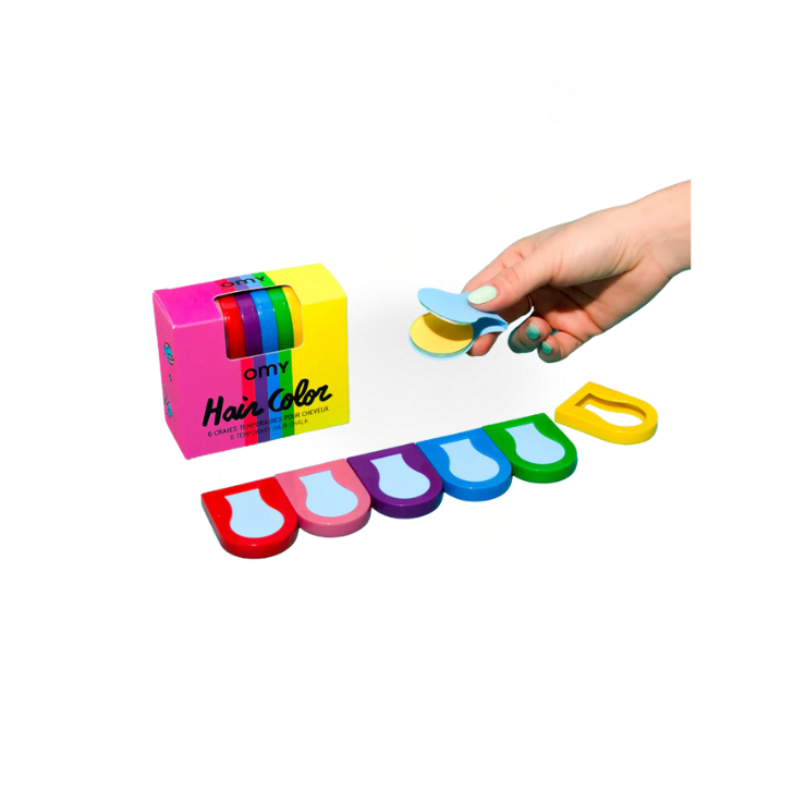 Мгновенно добавьте яркий блеск своим волосам! Набор включает 6 мелков для волос (розовый, красный, фиолетовый, синий, зеленый и желтый) для создания уникальных причесок. Подходит для светлых и темных волос, как сухих, так и влажных.