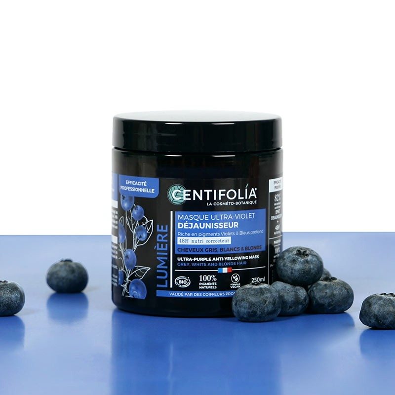 Первая ультрафиолетовая маска от Centifolia, нейтрализующая желтизну, которая питает и восстанавливает волосы в течение 48 часов, сохраняя чистоту и блеск светлых, седых и белых волос.