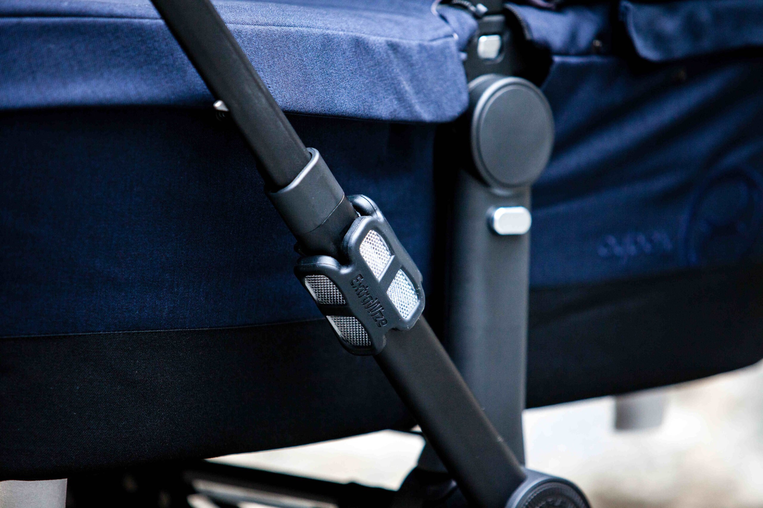 BuggyWize прекрасно подходит для большинства детских колясок. Благодаря универсальной форме и растягивающемуся силиконовому корпусу BuggyWize лучше всего крепится на рамы диаметром 29-35 мм. Удобное крепление изделия позволяет легко менять его положение при необходимости. Для детских колясок мы рекомендуем использовать по одному отражателю с каждой стороны и, по возможности, размещать отражатели на уровне колен взрослого человека.