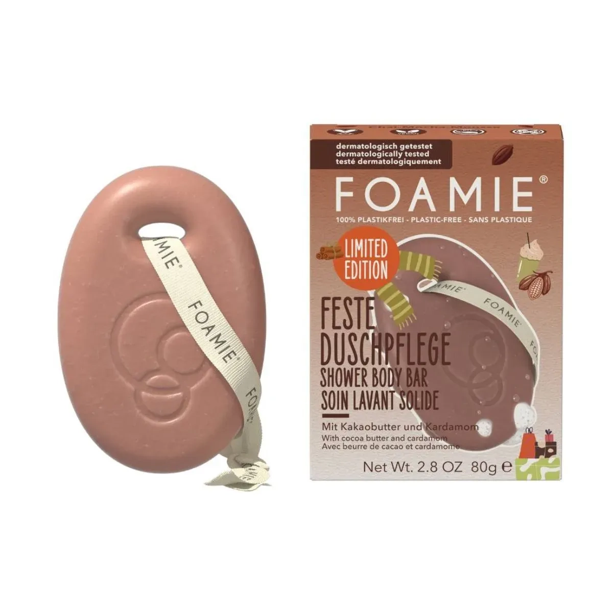 Лимитированная серия средств для душа Foamie в твердой форме предлагает мягкое очищение и уход за кожей в полностью безпластиковом формате. Теплый и пряный аромат какао и кардамона создаёт приятную расслабляющую атмосферу, особенно подходящую для прохладных осенних и зимних дней.