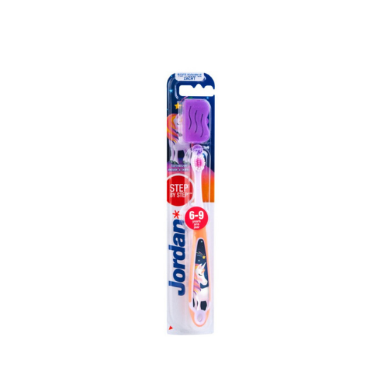 Зубная щетка Jordan подходит для детей в возрасте от 6 до 9 лет.