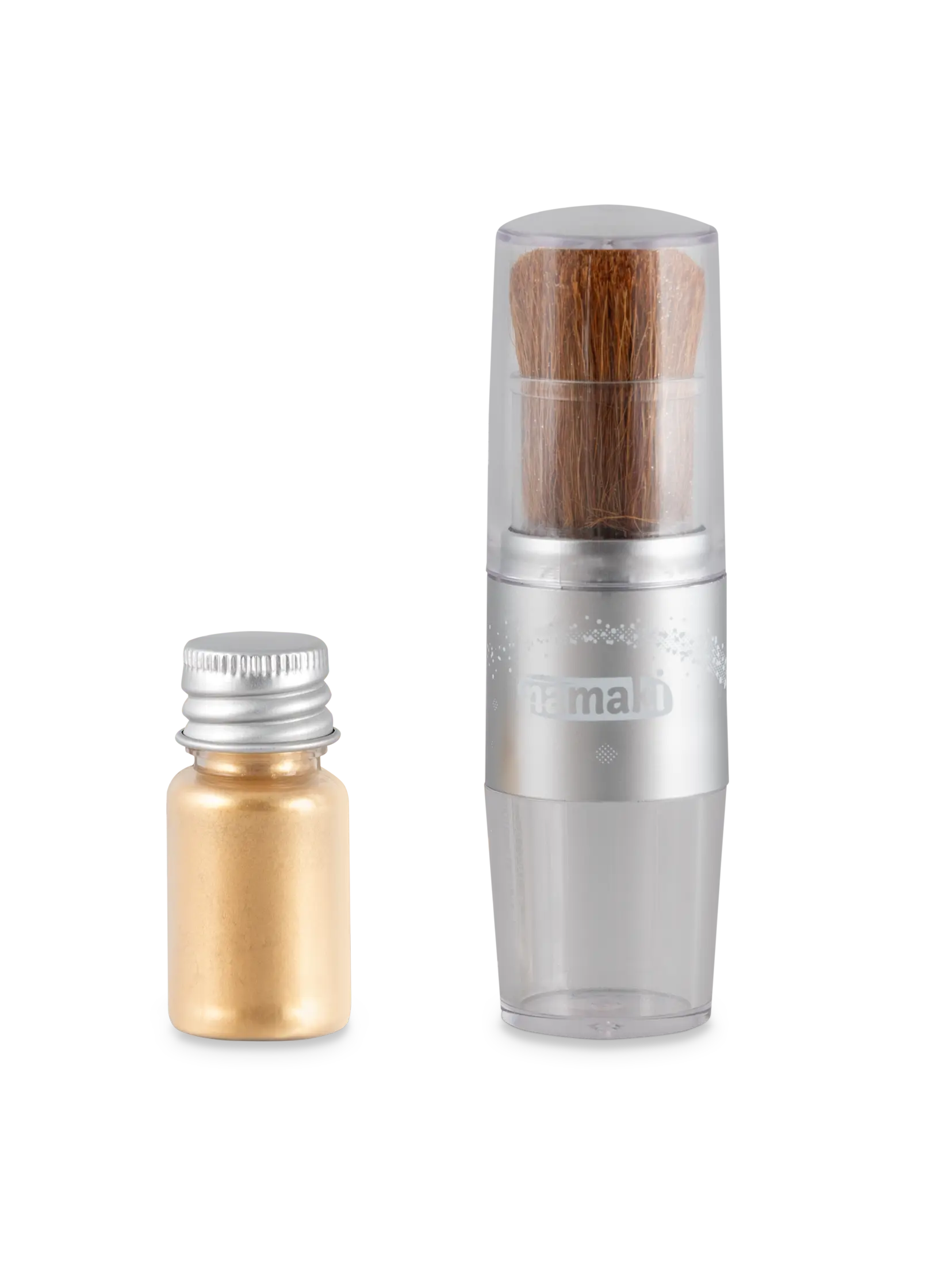 Пудры с эффектом мерцания Namaki завершают макияж кожи мягким и нежным штрихом. В комплекте волшебная многоразовая кисточка, которая наносит пудру столь же деликатно, как ласка. Простое прикосновение к коже или волосам дарит золотой блеск. Экологично и экономично — бутылочка-наполнитель также продаётся отдельно. Эффект мерцания достигается за счёт минеральных компонентов натурального происхождения.