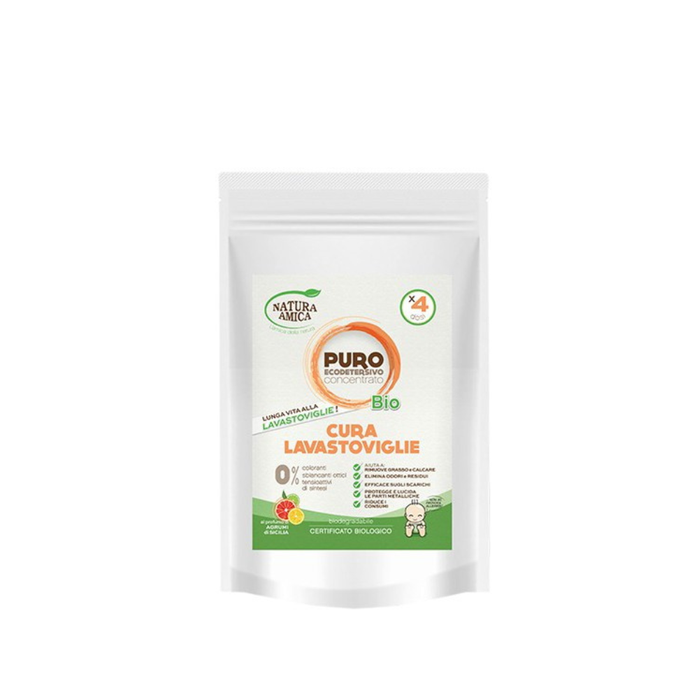 Натуральный концентрированный порошок для ухода за посудомоечной машиной без вредных химикатов. Не содержит красителей, оптических отбеливателей и синтетических ПАВ. Биологически разлагаемый. Одной упаковки хватает на 4 применения.
