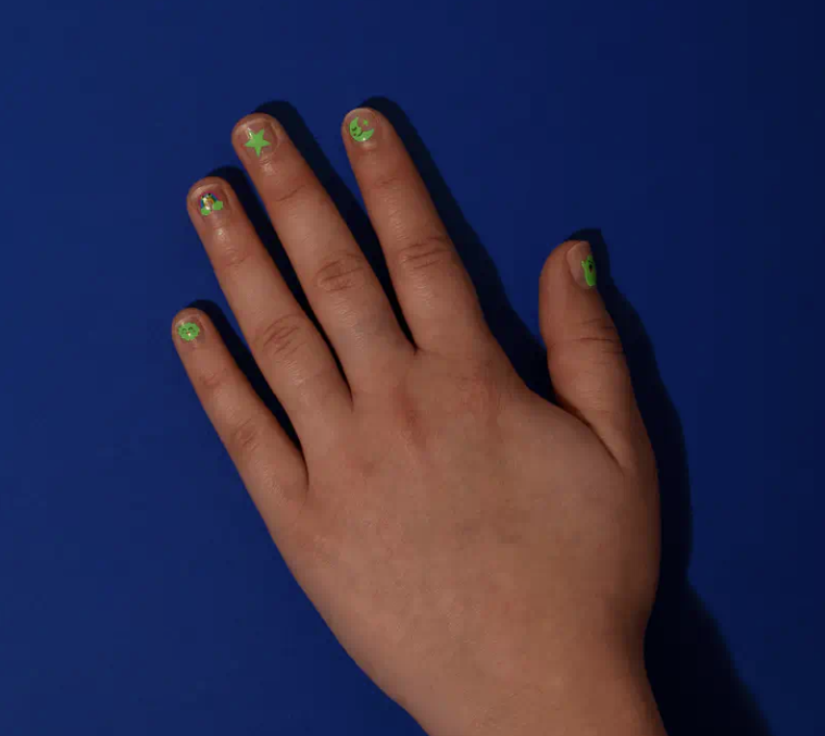 200 очаровательных наклеек для ногтей, специально разработанных для детских ногтей—легко клеятся, держатся 1–2 дня и не смываются даже при частом мытье рук.