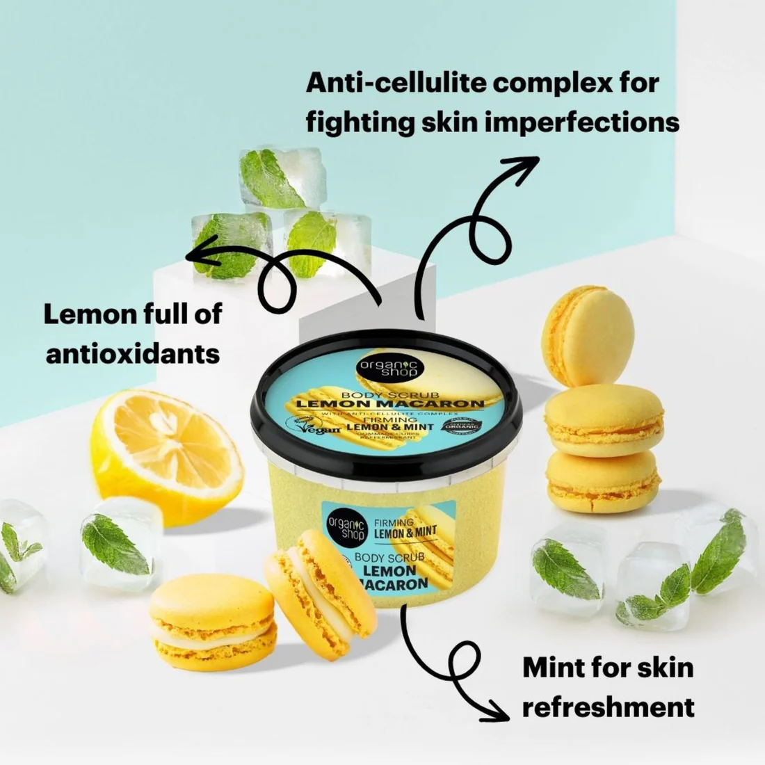 Сияние и ощущение лета в каждом отшелушивании! Этот подтягивающий скраб для тела обладает уникальной текстурой, напоминающей лимонный макарон, и окутывает вашу кожу свежим ароматом цитрусовых конфет.