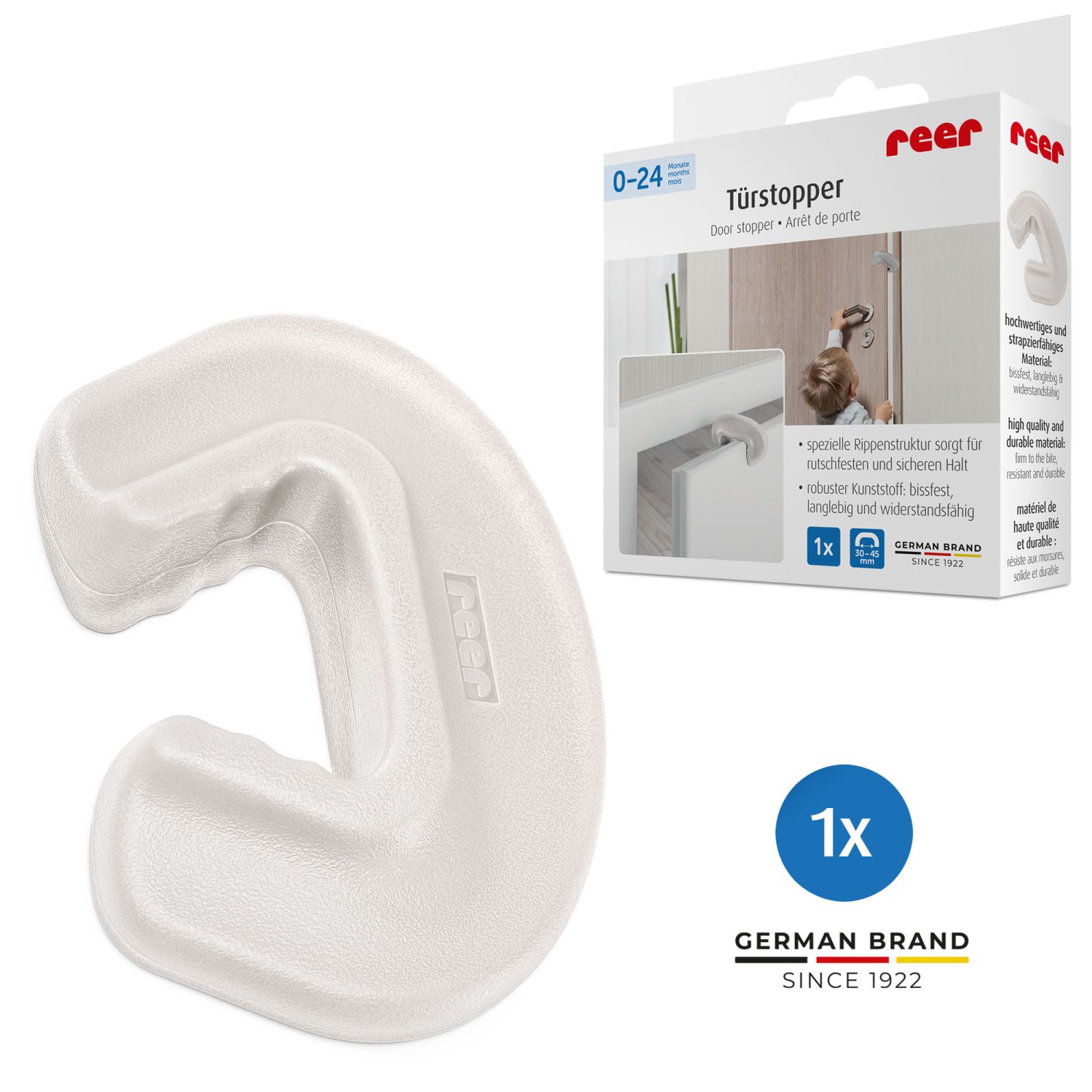 Ограничитель двери reer помогает предотвратить одну из самых распространённых домашних травм, когда ребёнок зажимает пальцы в закрывающейся двери. Мгновение невнимательности, порыв ветра или дверь, захлопнутая во время игры, могут привести к нежелательному закрытию и серьёзным травмам ребёнка. Ограничитель препятствует полному закрытию двери, оставляя достаточно пространства (не менее 12 мм), чтобы пальцы ребёнка оставались в безопасности снаружи. Кроме того, изделие исключает ситуации, когда ребёнок может случайно запереться в помещении.