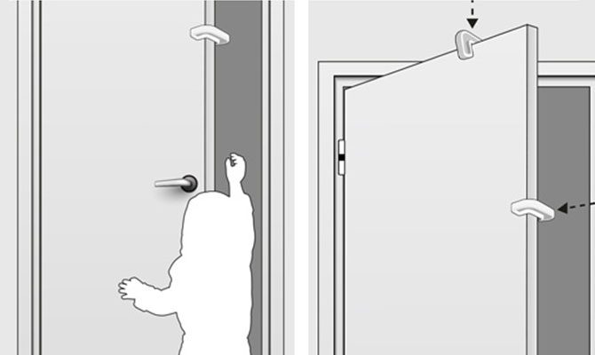 • Простой монтаж — не требует клея, винтов или инструментов, надёжно закрепляется на двери