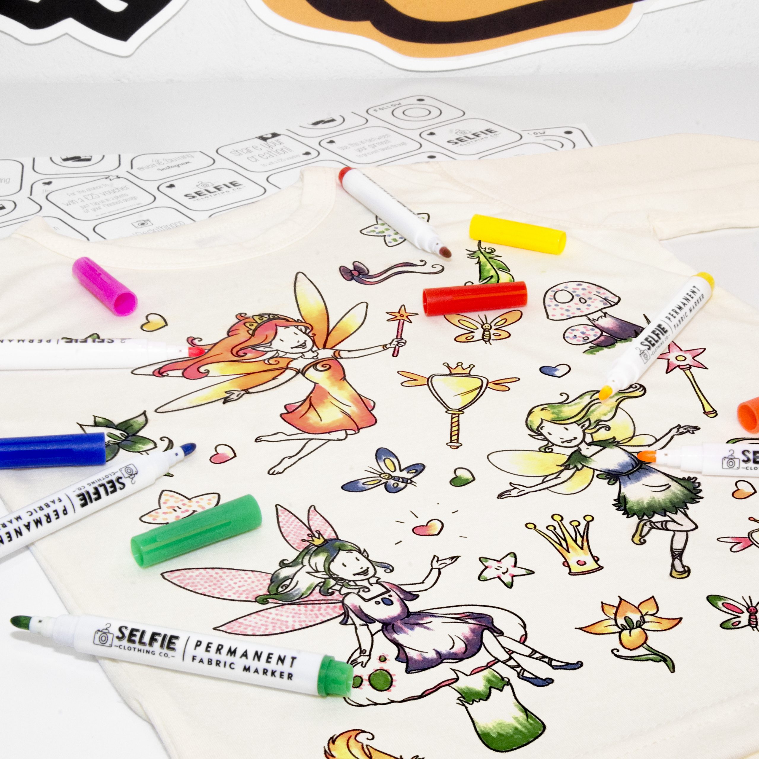 Футболка «Fairy Colour-In» это действительно очаровательный и креативный подарок, который оживляет воображение ребёнка! С текстильными маркерами, прилагаемыми в комплекте, каждый ребёнок может сам украсить футболки, заполняя прекрасные иллюстрации в феерическом стиле красками и индивидуальностью. В результате получается уникальное и носимое произведение искусства!