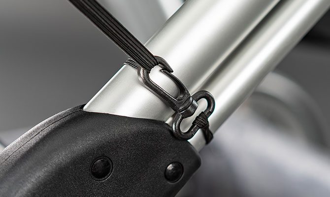 • Крепежные крючки обеспечивают надежную фиксацию даже на раме коляски