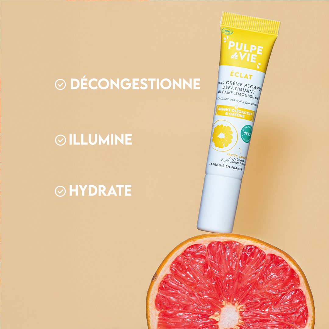Гель-крем содержит осветляющий растительный комплекс Oléoactif®, который помогает уменьшить выраженность темных кругов, регулирует выработку меланина и придает области вокруг глаз более светлый и ровный тон. Натуральный кофеин стимулирует микроциркуляцию, уменьшает отечность и обеспечивает более свежий, отдохнувший вид. Пробиотики Bioécolia® поддерживают микробиом кожи, успокаивают раздражения и укрепляют естественный защитный барьер кожи.