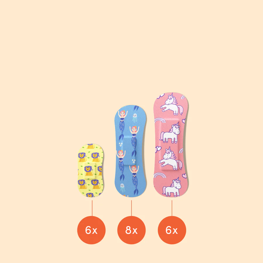 Пластыри водонепроницаемы и держатся на коже до 24 часов, защищая от грязи и бактерий. Снятие проходит безболезненно благодаря мягкому клею и не раздражает кожу. Запатентованные формы и красочные дизайны делают ношение пластырей веселым как для детей, так и для взрослых. Идеально подходит для домашнего использования, школьных рюкзаков или путешествий.