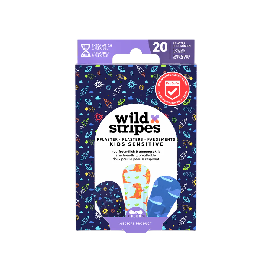 Wild Stripes Classic Sensitive Space — это соответствующее требованиям ЕС медицинское изделие, предлагающее больше, чем просто защиту. Пластырь с забавными узорами и пастельными цветами помогает добавить позитива каждый день, обеспечивая надежную защиту для небольших ран. Набор идеален для людей с чувствительной кожей — пластыри гипоаллергенны, безопасны для кожи и обеспечивают сверхпрочную адгезию даже при активном образе жизни.